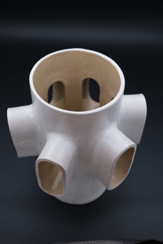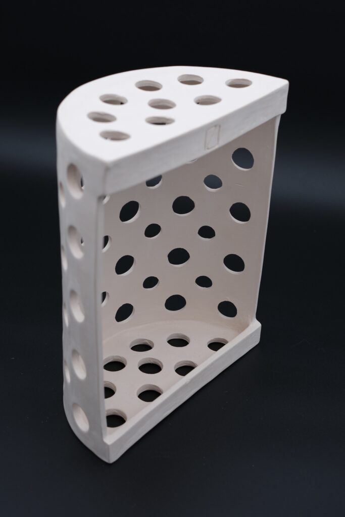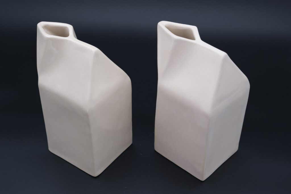 BRIQUE DE JUS DE FRUIT Cette série de la collection « Package » revisite un objet familier : la brique de jus de fruit. Transposée en céramique, cette forme industrielle et jetable devient un objet durable. Par un patient travail à la plaque je façonne des arrêtes franches et je cherche à restituer par le […]