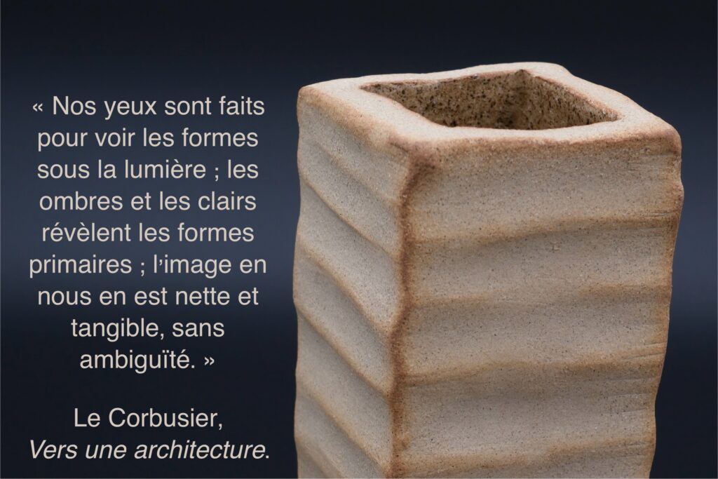 Ainsi la céramique se fait architecture, inspirée par l’esthétique brutaliste, transposée à l’échelle de la table et de l’habitat : les objets de cette collection – bols, tasses, vases, luminaires, etc. – évoquent les lignes radicales des bâtiments de cette période ; en les modelant, j’ai cherché à mettre en évidence la beauté des formes massives et des teintes naturelles.