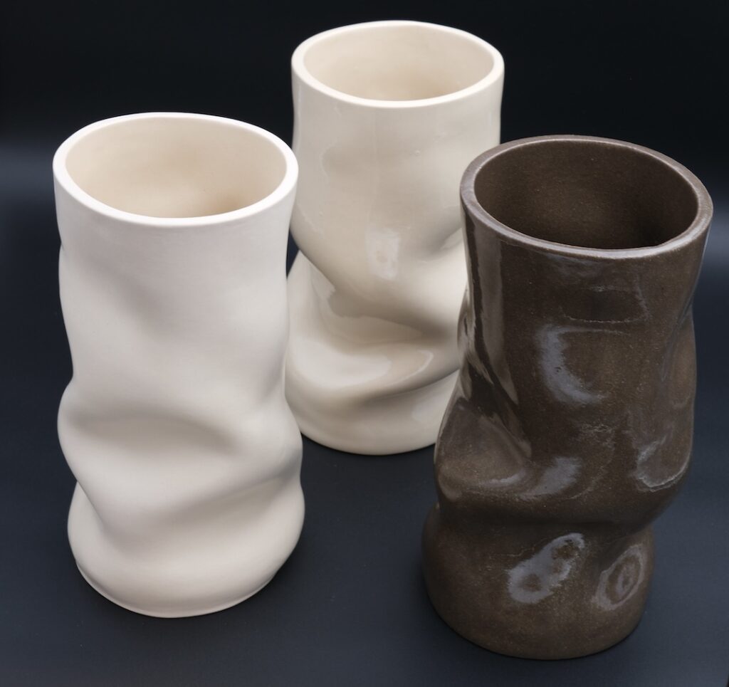 VASES FLEURIS Ces vases originaux sont modelés pour reprendre les plis, les froissements et les volumes de sacs en papier. Une fois cuite et émaillée, puis l’intérieur rendu parfaitement étanche, l’argile accueille bouquets frais ou fleurs séchées. Jouant de la rencontre du végétal et du minéral, un effet de contraste et de matière qui révèle […]