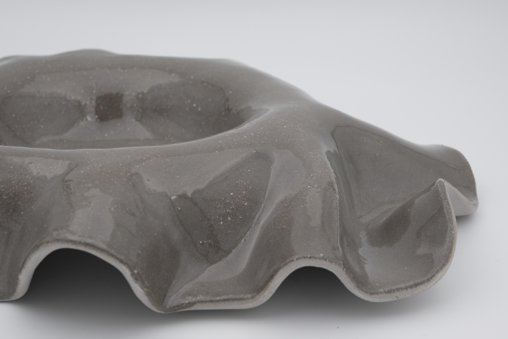 Ces pièces uniques de faïence ou de grès sont façonnées en combinant deux techniques ancestrales : le modelage à partir de blocs d’argile modelés, déformés, creusés, enroulés ; le pinçage où l’argile est façonnée entre les doigts par pressions successives. Après le séchage, la cuisson s’effectue en deux temps : d’abord « le biscuit » (faïence) ou « le dégourdie » (grès) qui fige formes et textures, ensuite la vitrification qui sublime la pièce par des émaux de couleurs aux rendus toujours surprenants ou des jeux de matières associant surfaces mates et brillantes.